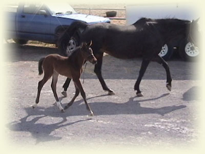 Doha Day D.O.B: By: Out of: Owner: Breeder: Riverland Farm proudly introduces ES Donavans new filly, Doha Day, aka Dodie. She was born April 16th at 1:30 in the morning. We waited an extra two weeks for her and she was worth the wait! She is very correct, very personable, very athletic, and already independent! Her dam is Remember Romance (Remy, a Thoroughbred, registered name Ona Rainy Day, approved with the AHS and ISR/Oldenburg). This one may stay home! Site Champion Filly at the 2003 American Hanoverian Society Inspections at Oldenburg Farm in Mequon, Wisconsin and first recipient filly of the new Midwest Breeder's Group Site Champion Award. |