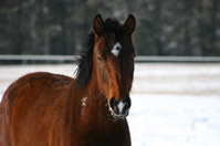 Dryiannah, 2006 filly, bred and owned by Bhritta O'Neill of Montana. She is out of Hobbit, a former Hunter/ Jumper. "A puppy dog" says Bhritta, follows her everywhere. White socks, Bay..just a dear filly.