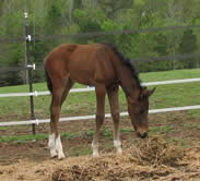 Just want to report a beautiful colt out of my arabian mare, C'est La Vie. He is HUGE and extremely attractive: bay with four tall socks and a big star, very uphill conformation and substantial bone for an arabian cross. I think he's 85% Donavan and 15% the mare.