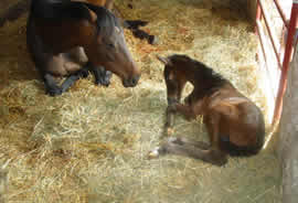 Congratulations to Shannon Grager on her new filly, born at 7:30 a.m. She is adorable even only a few hours old.
