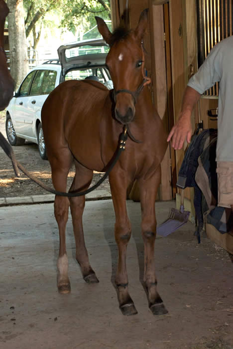 Lovely bay colt , very correct, adorable face, and soft eye; strong and energetic, click on photo to see more. Long legs, diagonal socks. star! So like his sire! just remarkable colt!